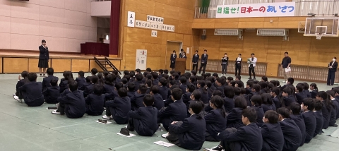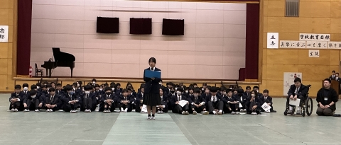 本日3年生を送る会が行われました。1,2年生が、感謝の気持ちや来年度に伝統を繋いでいく気持ちを3年生に伝えました。3年生も1,2年生の想いを受け、それに応えました。感動的な会となりました。