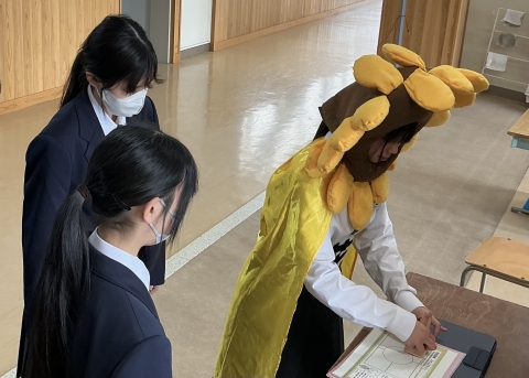 生徒会本部役員が1年生に花中を知ってもらおうと企画し運営しました。1年生はスタンプラリーやクイズに答えながら花中を探検しました。