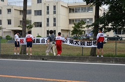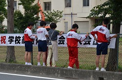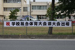 美術部さんたちが作成してくれた県大会出場の横断幕を校舎裏のフェンスに張ってくれました。美術部のみなさん、ありがとうございました。道を通る際には、美術美作成の「質の高い」横断幕をご覧ください。