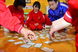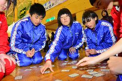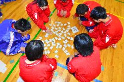 冬休みの宿題で、「百人一首を覚える」というのがあり、今日はその成果を試すため、花園中学校百人一首大会を開催しました。やはり、しっかり覚えている生徒はたくさん札をとれていますね。「