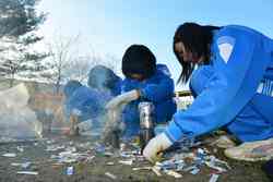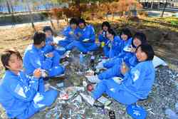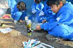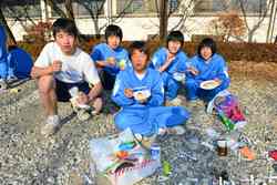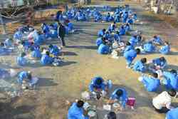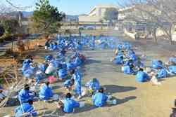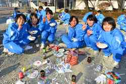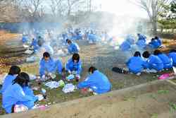 東海・東南海・南海等の大地震が予想されていますが、いざというときのために、2年生全員で、ジュース等の空き缶を利用したサバイバル炊飯を実施しました。燃料の牛乳パックが煙って目が痛くなりましたが、ほぼ全員の生徒がサバイバルライスをおいしく食することができました。貴重な体験となりました。