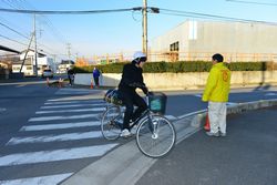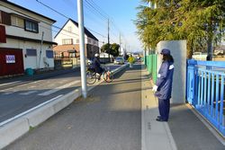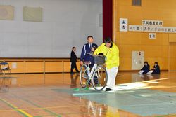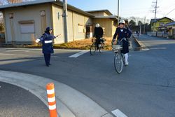 寄居警察、深谷市自治防災課交通安全係、交通指導員の皆さんが来校し、朝の交通安全指導や集会で自転車の安全点検方法や安全運転について御指導いただきました。