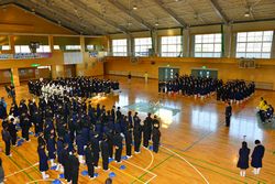 生徒会引き継ぎ式を行いました。新生徒会の役員のみなさん、花園中学校をよりよくするためにがんばっていきましょう。旧生徒会の役員のみなさん、今までありがとうございます。
