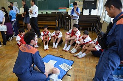 本日、深谷市花園消防署の4名の署員さんを指導者としてお招きし、全ての教職員と部活動の2年生代表者で「心肺蘇生法研修会」を実施しました。その後、教職員で「緊急時初期対応訓練」を行いました。命を守ることの大切さを再確認できた時間でした。花園消防署のみなさん、本日は誠にありがとうございました