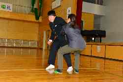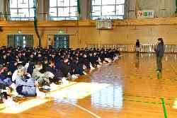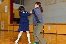 警察の皆さんにお世話になり、不審者対応の避難訓練を実施しました。犯人役が3年1組の教室に乱入し、生徒は体育館に避難、男性職員で犯人を捕り押さえ、110番で駆けつけた警察官に引き渡しました。また、体育館では、寄居警察のMさんから護身術の手ほどきを受けました。不審者対応の貴重な体験となりました。