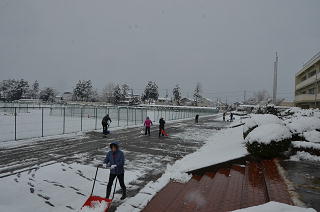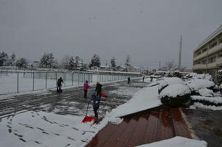 安全な登校のために 先生方で除雪作業を行いました!