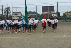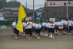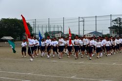 天候が危ぶまれる体育祭でしたが、生徒の熱意で雨もちょっぴり降っただけで、無事に実施することができました。来賓の皆様、保護者の皆様、地域の皆様に御参加いただき、盛大に実施することができました。心より感謝申し上げます。プログラムに沿って写真で紹介します。