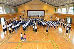 生徒会引き継ぎ式を行いました。新生徒会の役員のみなさん、花園中学校をよりよくするためにがんばっていきましょう。旧生徒会の役員のみなさん、今までありがとうございます。