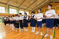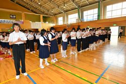 生徒会本部役員が中心になり、6月20日~22日まで実施される学総地区予選会の壮行会が実施されました。各部の部長が壇上に上がり、部員とともに決意表明をしました。また、応援団(臨時)を中心にエールを送りました。”試合の勝ち負けの結果は後からついてくるものです。積み上げた練習成果を自信にし、平常心で悔いのない試合をしてきてください。”