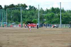7月24日(金)、東松山市駒形球場で県大会2日目が実施されました。さいたま市立内谷中学校と対戦し、10:0(3回コールド)で勝利しました。3日目は明日、毛呂山町大類グランドで実施されます。