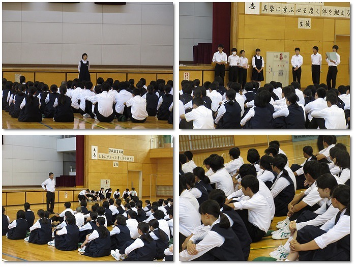 今朝は学年集会が行われました。3年生は修学旅行のまとめ、1年生はレクが行われました。