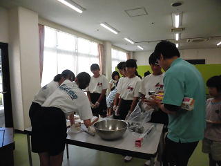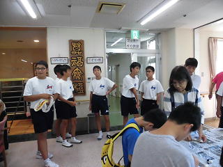 8月17日(金)に、毎年恒例のサマースクールが花園フラワーヴィラで行われました。サマースクールとは、地域のお年寄りとの交流が目的で、今年は45名もの生徒が参加しました。うどん作りや織物作りにチャレンジするなど、お年寄りと交流し、楽しい一日を過ごしました。