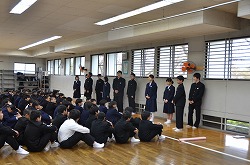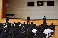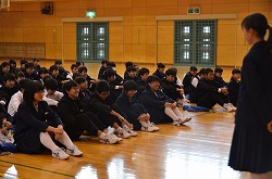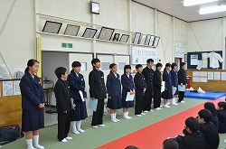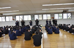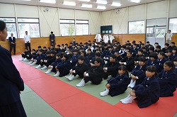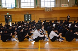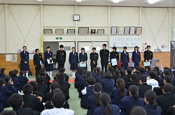 1年生は柔道場で、2年生は剣道場で、3年生は体育館で「学年集会」を行いました。1年生は学年委員の紹介・後期の目標・合唱コンクールに向けての抱負、2年生は学年委員の紹介・自主勉強の取組、3年生は学年委員の紹介・合唱コンクールに向けての目標、駅伝出場者へのエールを行いました。3つの学年とも、落ち着いた雰囲気の中で行われました。