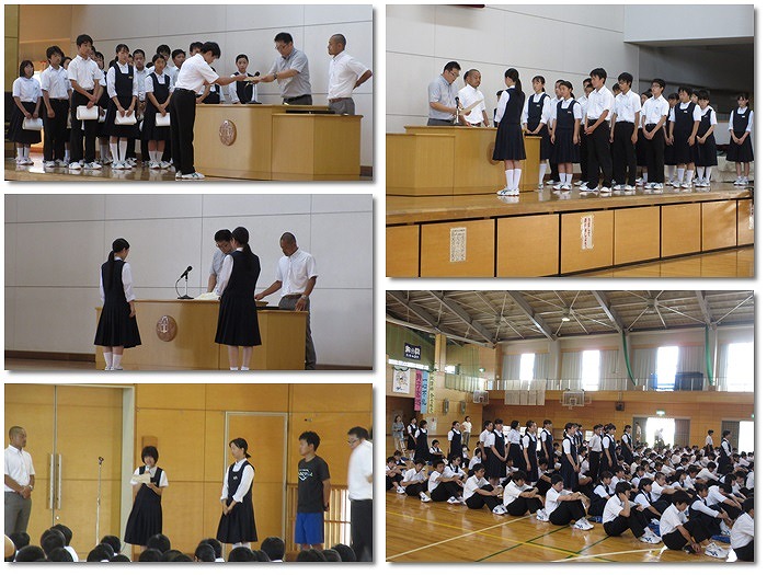 今日の全校朝会は学校総合体育大会の表彰をはじめ、多くの表彰が行われました。