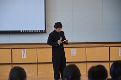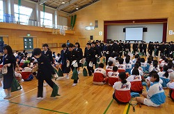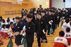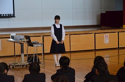 本日の5・6校時、体育館で「生徒会・部活動説明会」を行いました。生徒会説明会では、本部役員が映像で専門委員会・各行事の説明を丁寧に行いました。部活動説明会では、15部活動が活動の一端を具体的に披露しました。1年生の真剣に聞き入る姿や2・3年生の先輩として自覚ある態度がとても素晴らしかったです。
