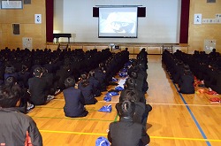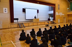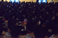 花園中学校では11月15日(火)から11月25日(金)までを人権旬間とし、人権についての理解を深めそれらを解消することのできる生徒の育成をねらいとして取り組んでいます。本日の人権集会では校長先生より、「リアルな世界をきちんと見ることが大切である。いじめは、とても悲しいことしか生まれないので、自分をもう一度見つめ直して欲しい。傍観者には、すごいパワーがある。向き合う勇気もすごく大事だけど、逃げることは別に悪いことではないことも知って欲しい。」と講話され、最後に「種をまこう」という作文を聞かせていただきました。次に、DVD「悩まずアタック~脱・いじめのスパイラル」の視聴を行い、相手の立場に立つことの大切さをさらに学ぶことができました。本日の集会で感じたことをこれからの生活に生かし、いじめや差別のない学校、社会を創っていきましょう。