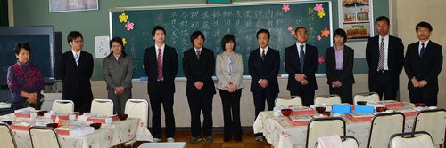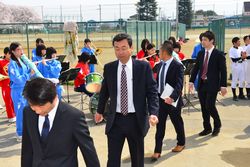 満開のさくらの花園中に、平成25年度の当初人事異動により12名の転入職員を迎えました。生徒の皆さん 地域の皆様、保護者の皆様 どうぞよろしくお願いいたします。本日は初出勤なので、部活動をしているたくさんの生徒の皆さんが熱烈歓迎をしてくれました。吹奏楽部の演奏も加わり、心暖かな歓迎会となりました。