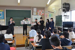 本日、3名の本校職員が花園小学校に行き、6年生に「出前授業」を行ってきました。6年1組では清水祐輔教諭が「社会」の授業を、2組では沖野谷隆教諭が「音楽」の授業を、3組では柴田浩一教諭が「数学」の授業を行いました。これから入学する中学校の先生の授業を実際体験することで、入学への不安な気持ちは薄らぎ、楽しみな気持ちが生まれたのではないでしょうか。6年生の真剣な眼差しや笑顔がとても印象的でした。