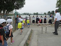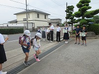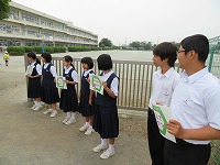 1,2年生の本部役員と生活向上委員が、花園小に行き、あいさつ運動を行いました。