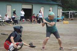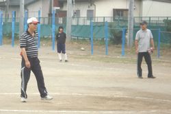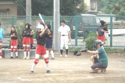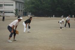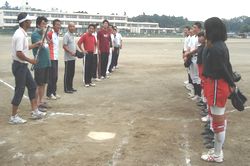 ソフト部と野球部の生徒連合チームの挑戦を受け、老体に鞭打つ教員軍団とのソフトボールの試合を行いました。教員軍団も善戦及ばず、若さあふれる生徒チームに 19対3 の大差で完敗してしまいました。恐るべし生徒の力!! 応援してくれた生徒や先生方もたくさんいて、友好が深まりました。