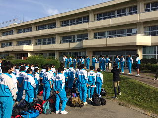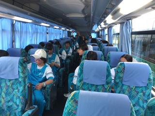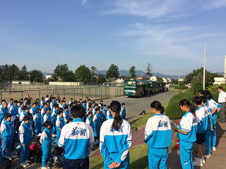 集合時間に全員が集まり、2年生が予定通り自然体験学習に、無事出発しました。