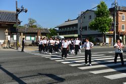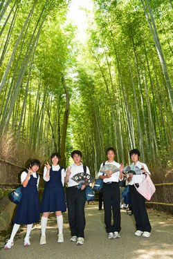 3日目は、朝のトレーニング(自由参加)から始まり、朝食後、京都駅まで歩き、JR山陰線でトロッコ電車に乗るために馬堀駅まで行き、トロッコ電車に亀岡駅から乗車し嵐山駅までゴットンゴットン楽しみました。その後は、嵐山一帯の散策を班ごとに行いました。そして、JR嵐山駅から京都駅に行き、新幹線で帰ってきました。