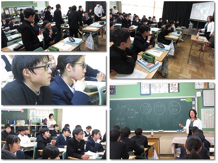 本日の2年1組の家庭科の授業では、花園第2こども園の高木園長に来校していただき、授業が行われました。保育園の様子を交えて、どうやって乳幼児と関わったらよいか、仲良くなる秘けつ等も教えていただきました。お忙しい中、ご指導ありがとうございました。