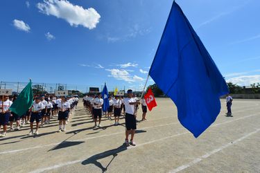 越谷方面では竜巻でたいへんな被害が出たようです。お見舞い申し上げます。本日はぬけるような青空の下、体育祭練習をがんばりました。開会式の練習など行いました。