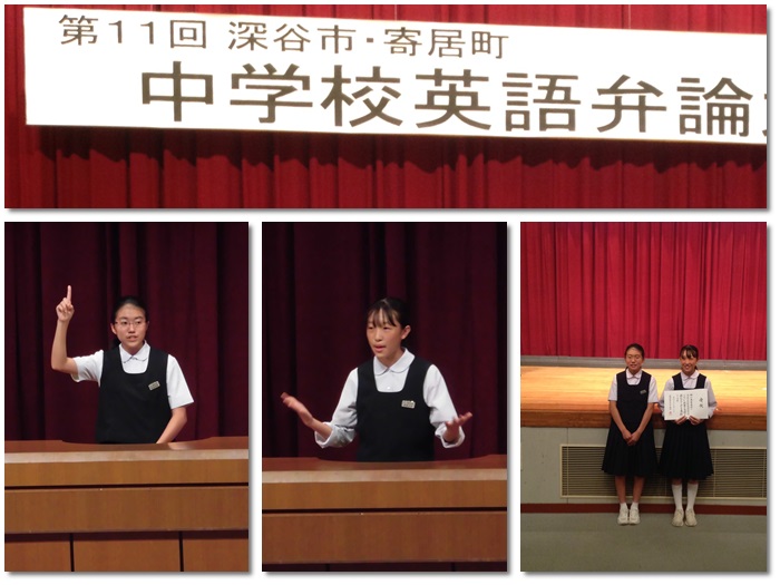 深谷市・寄居町中学校英語弁論大会が行われました。本校から2名出場し、優秀賞、優良賞を受賞しました。二人とも素晴らしい発表でした!