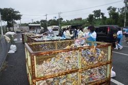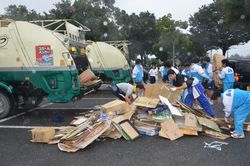 8月29日(土)、生憎の小雨が降り続く中、地域の皆様並びに花園中学校保護者の皆様に御協力戴き、資源回収を実施することができました。特に、2学年の生徒並びにPTA本部役員・地区委員の皆様には、雨にもかかわらず献身的に御協力戴き、ありがとうございました。皆様の御協力に心より感謝申し上げます。お陰様でかなりたくさんの、新聞・雑誌・アルミ缶・布類等が集まりました。これらの資金については後ほど御報告させて戴きますが、、部活動等いろいろな教育活動に利用させて戴きたいと思います。重ねて、御協力ありがとうございました。