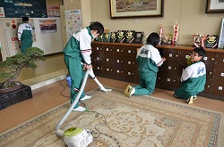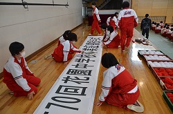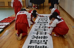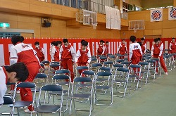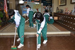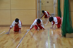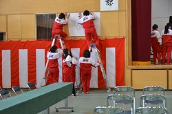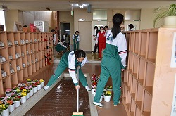16日(木)に挙行される卒業式の準備を行いました。3年生への感謝の気持ちを込めて、2年生は体育館内の卒業式準備、1年生は校舎内と外回りの美化を行いました。全員が熱心に取り組んでいました。