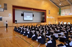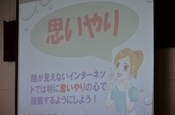本日、NPO法人スクールネットアドバイザー赤木聡理事長様をお迎えし、「携帯安全活用教室」を実施しました。LINEやSNSを使用する場合の危険性について具体的に話され、次の5つのルールについて説明がありました。