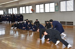 2日(水)の6校時、1年生は剣道場、2年生は体育館で4日(金)に実施される「三年生を送る会」の学年練習を行いました。今年も、お世話になった3年生の先輩たちのために、1年生も2年生も心のこもった出し物を企画しています。思い出に残る「三年生を送る会」になるよう、1・2年生全員が頑張っています。3年生の皆さん、楽しみにしていてください。