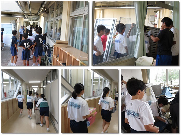 昨日は部活動単位で、今日はクラス・学年ごとに作業を行いました。大きく重い荷物移動もありましたが、みなさんの協力のおかげで大部分の移動を終えることができました。ありがとうございました。まだ片付け等が少し残っていますが、協力をして完了させましょう。