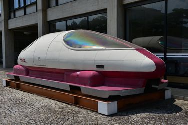 写真は順に、①鉄道総合技術研究所の風景 ②打ち合せの様子 ③ML100(1972年)モデル ④ML500(1977年)モデル ⑤MLU001モデル ⑥MLU002宮崎実験線モデル ⑦山梨実験線用モデル ⑧超電導磁石(宮崎実験線で使用) ⑨ML100(1972年)の実物 ⑩山梨実験線車両の実物