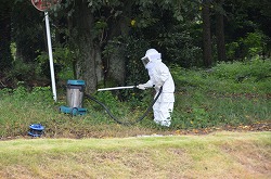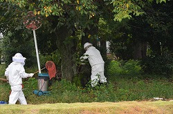 本日、スズメバチの巣を発見しました。業者の方ににスズメバチの駆除を行ってもらいました。これで、安心して体育祭の練習ができるようになりました。