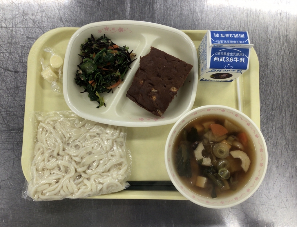 今日の給食では「勝つ」にかけて「カツ丼」でした。3年生には給食と一緒に、給食室からエールの手紙が配布されました。