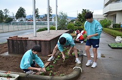 2日(月)の放課後、緑化委員会のみなさんか校舎前と体育館入り口前の花壇にパンジーを植えてくれました。今年も、花いっぱいのきれいな花壇が見られるでしょう。楽しみです。緑化委員のみなさん、ありがとうございました。