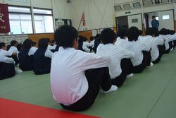 今年度、練習はじめに剣道部では、今年度の目標を書き初めで表しました。
