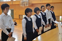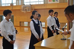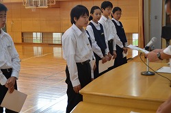退任した6名の旧本部役員のみなさん、今まで花園中学校の発展のため頑張っていただき、ありがとうございました。また、新生徒会本部役員のみなさん、花園中学校の全校生徒がより良い学校生活が送れるよう、よろしくお願いします。