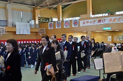 16日(木)の9時より、深谷市秘書室長 澤出晃越様、、深谷市議会副議長 富田勝様、深谷市議会議員 松本政義様、深谷市議会議員 新井清様、深谷市議会議員 清水健一様、深谷市議会議員 佐久間奈々様、深谷市教育委員会 新島穰二指導主事様、をはじめ32名の御来賓の皆様方の御臨席のもと、第70回卒業証書授与式を挙行いたしました。とても感動的な卒業式でした。卒業生のみなさん、花園中卒業生としての誇りを胸に、自分自身の力で切り開いた進路に向かって全力で進んでいってください。