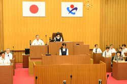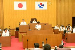 8月3日 深谷市役所の議場で、こども議会が開催されました。本校生徒会から2名参加し、「立志式を他の学校でも実施してはどうか。」「ふっかちゃんをもっともっと有名にしてはどうか。」等の質問をしました。担当部長や市長さんから真摯な答弁をいただきました。