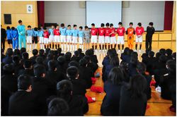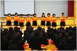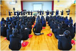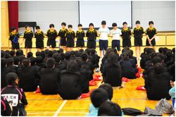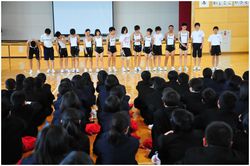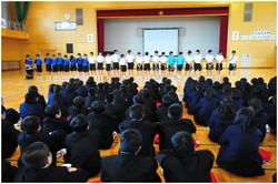 生徒会引き継ぎ式を行いました。新生徒会の役員のみなさん、花園中学校をよりよくするためにがんばっていきましょう。旧生徒会の役員のみなさん、今までありがとうございます。