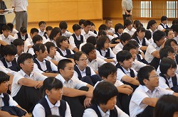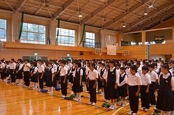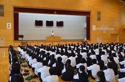 全校朝会で、校長先生より講話をいただきました。日本人の頭を下げるあいさつは、日本人が農耕民族であったことがルーツとなっているという「あいさつの原点」についてのお話をいただきました。これからも素晴らしい心のこもったあいさつができる花中生であり続けてくださいと結ばれました。