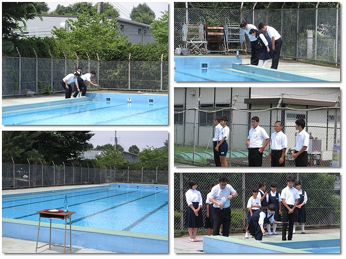 今日はプール開きが行われ、安全が祈願されました。みなさん、体育の先生方、体育委員のみなさんの指示に従い、安全に目標を持ってプールに取り組みましょう。