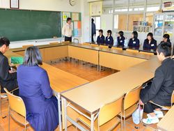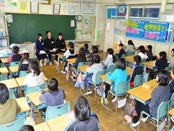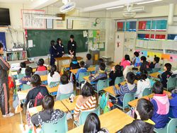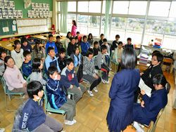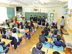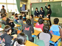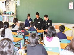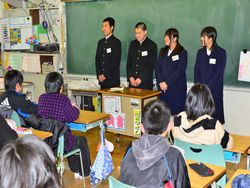 私立高校に合格した3年生が(県立高校はこれから受験)、花園小学校を訪問し、6年生に中学校の勉強・生活・部活動などについて説明しました。小学生からはいろいろ質問がでてお兄さんお姉さんの中学生が丁寧に答えました。小学生の皆さん、中学校のことよくわかりましたか?