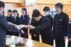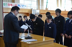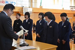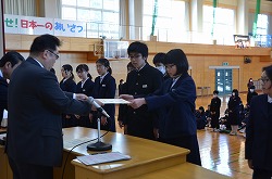 全校朝会で表彰を行いました