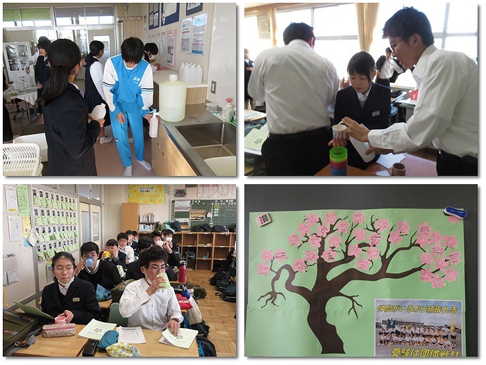 今日は久しぶりのフッ化物洗口でした。3年2組の様子を見にいきましたが、キレイな桜の掲示物が黒板に貼ってありました。それぞれの春に向けて、3年生の皆さんはがんばってほしいと思います。