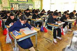 埼玉県で実施している「教育に関する3つの達成目標」・・・・①ペーパーテスト(読む・書く)、②ペーパーテスト(計算)、③「学力」「体力」の質問紙、④「規律ある態度」の質問紙 を実施しました。基礎的基本的な学力や学ぶ姿勢、日々の生活等について、見直す機会となります。(写真は、1-1、1-2、1-3 2-1、2-2、2-3、2-4 3-1、3-2、3-3)