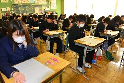 新3年生の皆さんが登校し、9日の入学式や始業式及び各クラスの清掃などがんばってくれました。生徒の皆さんのがんばりで、教室や体育館の準備が整いました。準備ご苦労様でした。新入生、新2年生、新3年生の皆さん、すばらしい入学式・始業式になりますね。